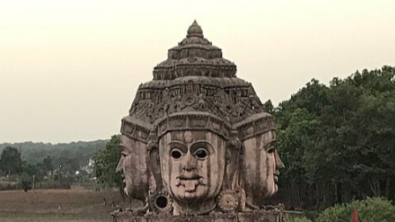 Shri yantra mandir - The most noticeable feature of the shri yantra mandir is the massive sculpture with four heads at the entrance path. The head represents the face of goddess laxmi, saraswati, kali, and bhuvaneshwari. They are accompanied by statues of lord ganesha and kartik, as well as 64 exquisitely carved deities also known as chaunsath yoginis. The temple is constructed as a 3-D projection known as sri yanta or sri chakra, which forms the core of the sri vidya worship in hinduism.